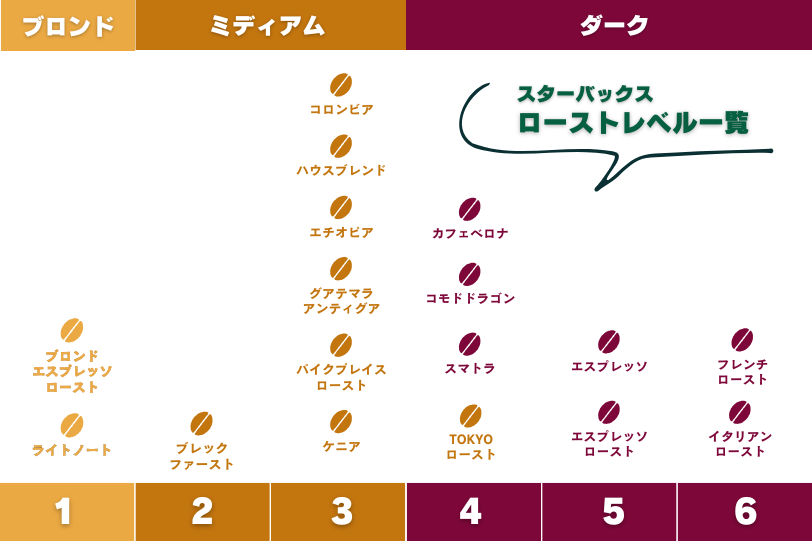 スタバのコーヒー豆は、大きく3つの「焙煎度(ロースト)」に分かれています。