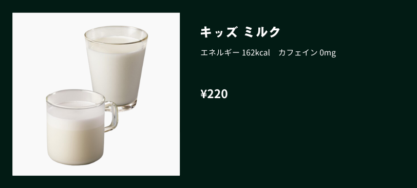 - 子連れの方には、クリーム系のフラペチーノやキッズミルク、フルーツジュースがおすすめ。