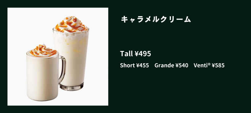 | サイズ | カロリー | 糖質 | カフェイン |