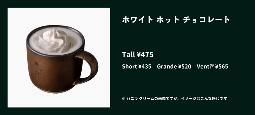 「〇〇サイズのホワイトホットチョコレートをください」でもOK。