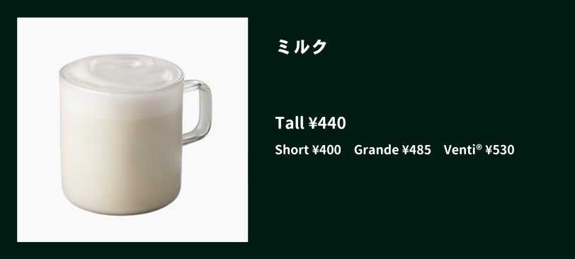 ミルクの優しい甘みが楽しめるシンプルなドリンク。