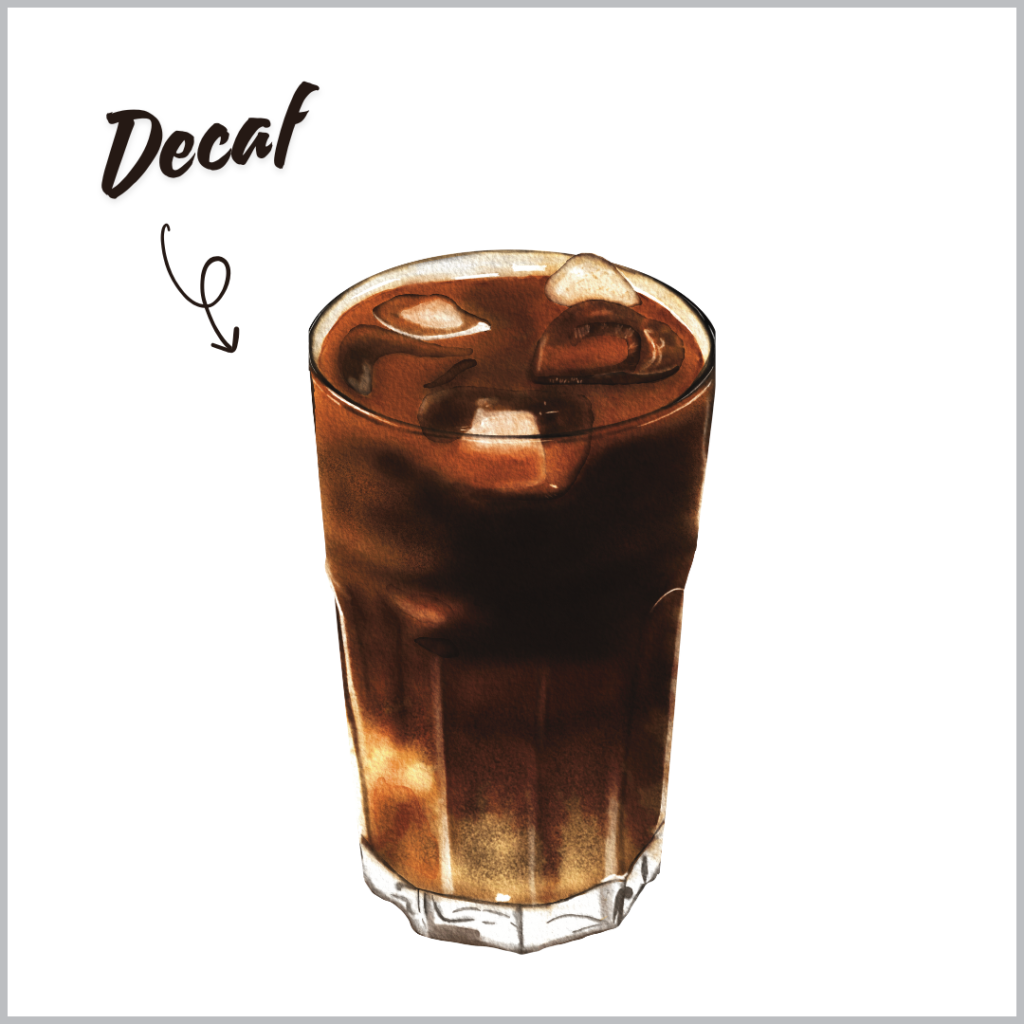 通常のブリュードコーヒー(ドリップコーヒー)は、ホットの場合約276mgのカフェインが含まれていますが、デカフェにするとわずか26mgに。ホットの場合はカフェインの約90%以上が、アイスの場合は約94%以上がカットされているんです!
