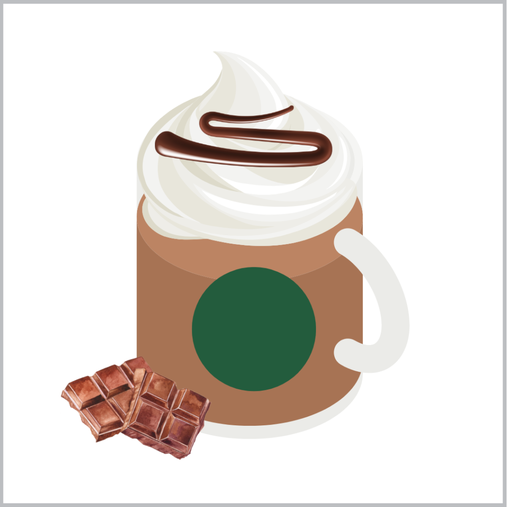 真っ白なフラペチーノ®にチョコの粒々が映えて、見た目にも楽しめるフラペチーノ。