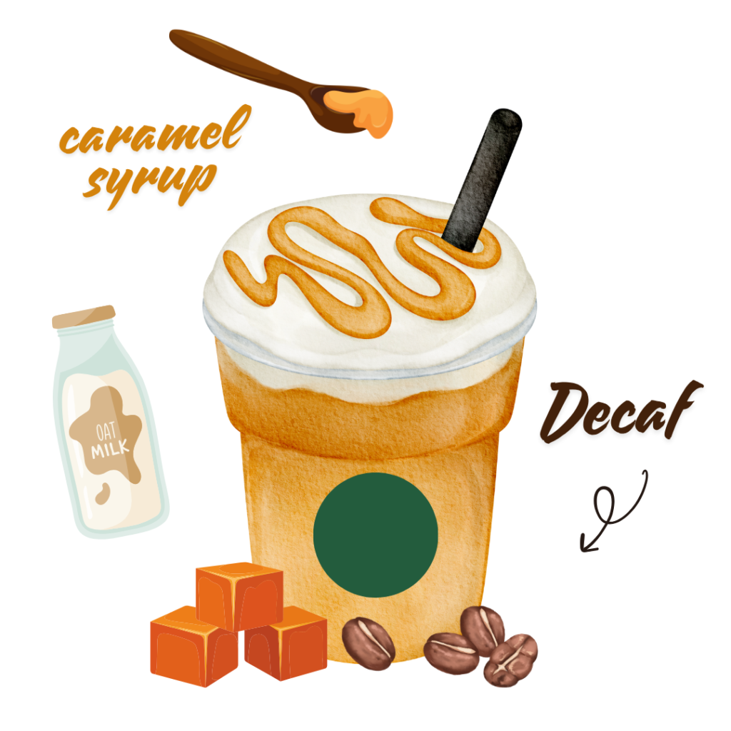 - キャラメルフラペチーノなどカフェインを含むメニューも、コーヒーロースト抜き(無料)で注文すれば、カフェインを減らすことは可能です