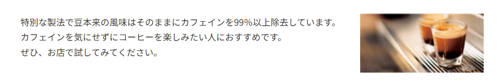カフェインを90%以上除去したコーヒー - カフェイン量