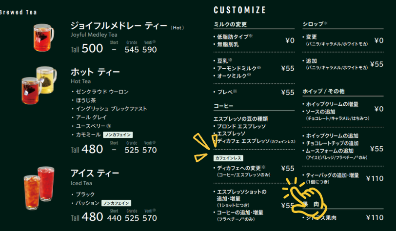 いつものドリンクってディカフェにできる?