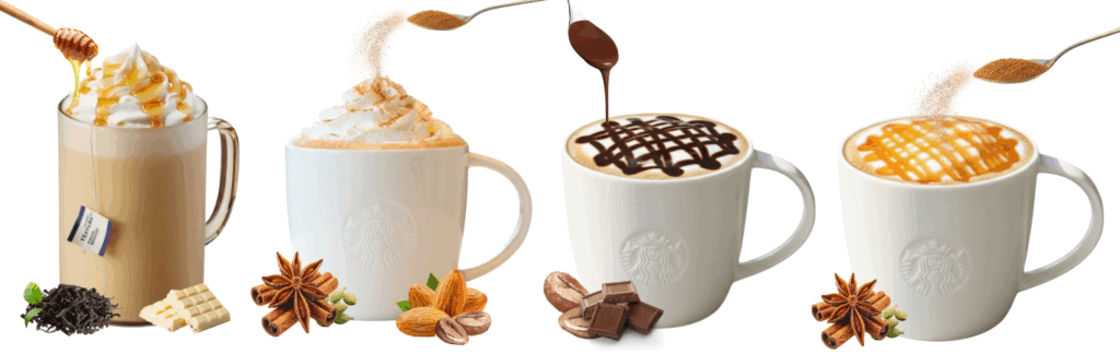 つまり…最初からシロップ・ホイップ・ソースが入っているドリンクほど、無料カスタムで豪華にできるんです!