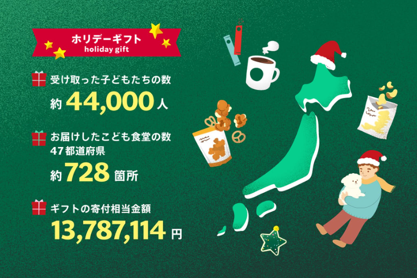 全国のこども食堂へ、ホリデーギフトとして分配。
