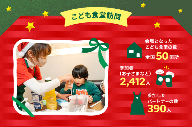 - 一部のこども食堂には、スタッフがサンタで訪問