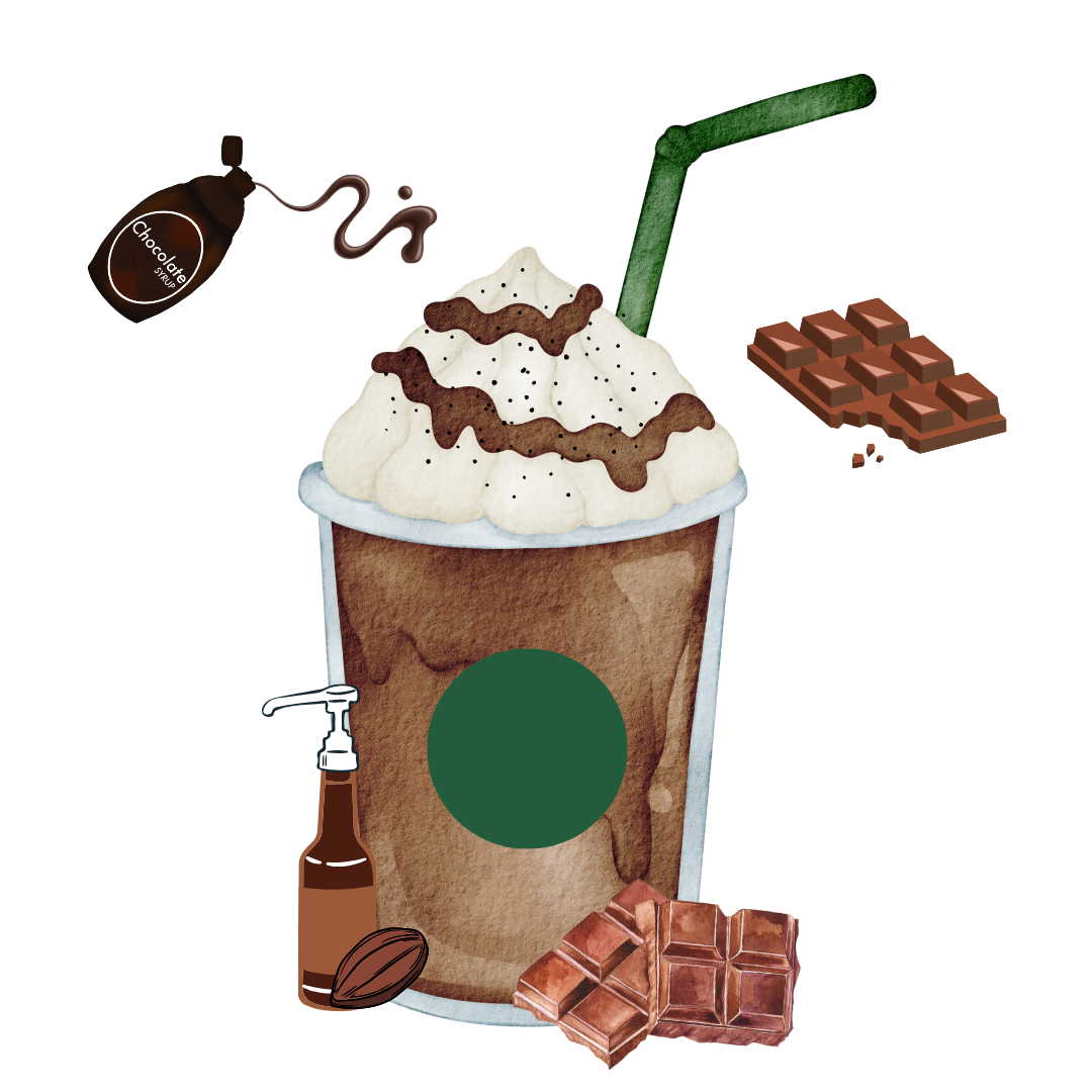 バニラシロップ追加でマイルドな優しい甘さを、チョコレートシロップでチョコ感をアップ!