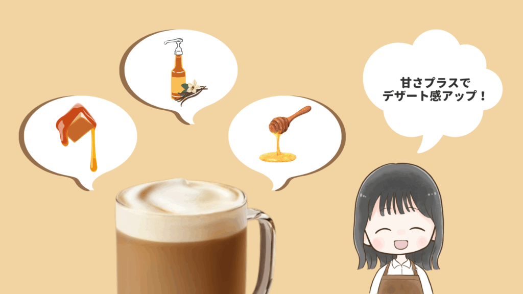 優しい甘さが加わり、エスプレッソのコクを邪魔せずに飲みやすくなります。