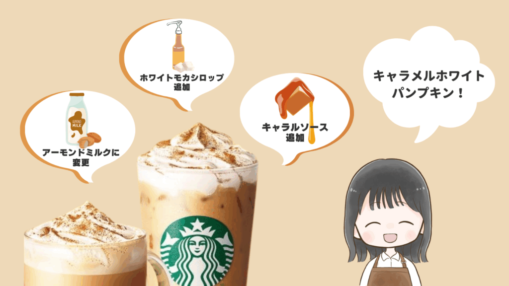 ホワイトモカのまろやかな甘さにキャラメルが絡む、甘党さん必見のカスタム。