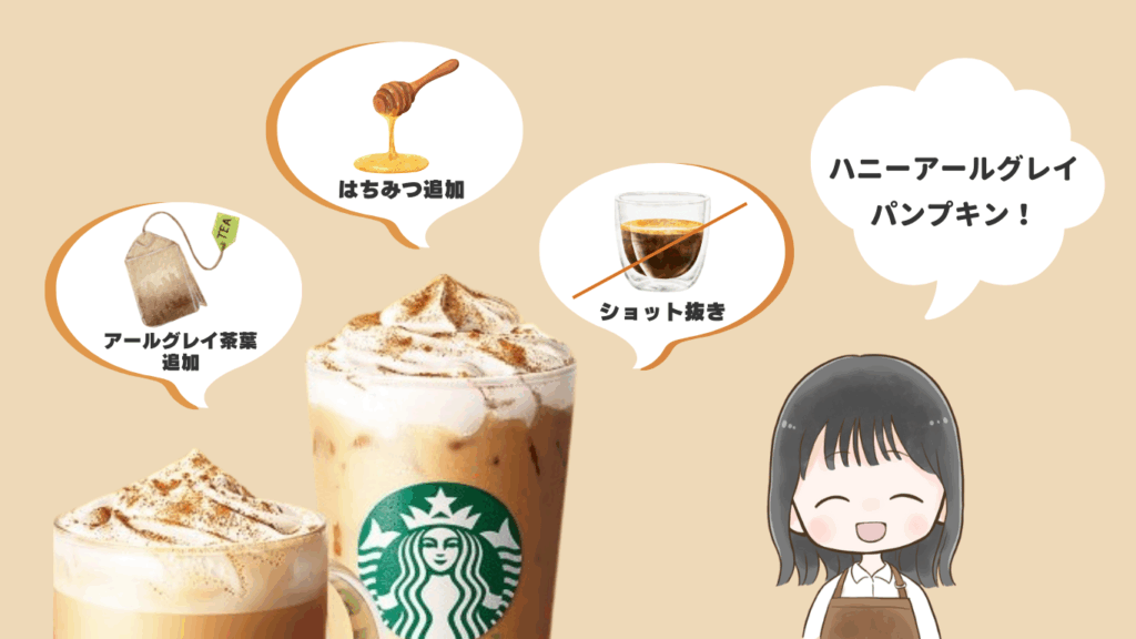 蜂蜜のやさしい甘さとアールグレイの香りが絶妙にマッチ!「紅茶ベースのパンプキンラテ」という新しい楽しみ方。